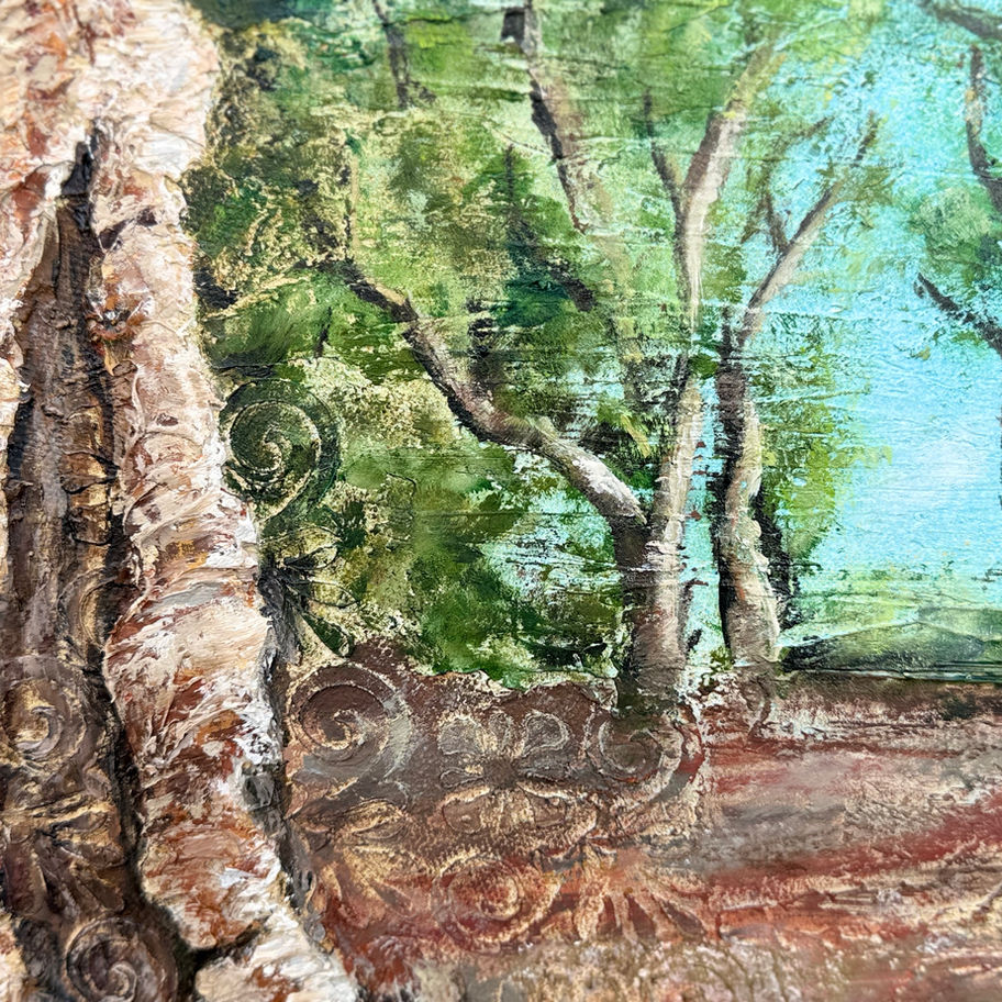 In this piece, the textured trunk and leaves are asking us to slow down, breathe and reconnect.