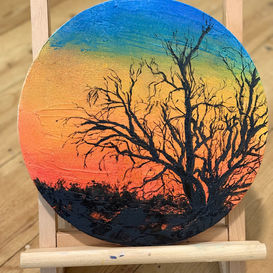 30cm Round. Mixed media oil painting on canvas, ready to hang.